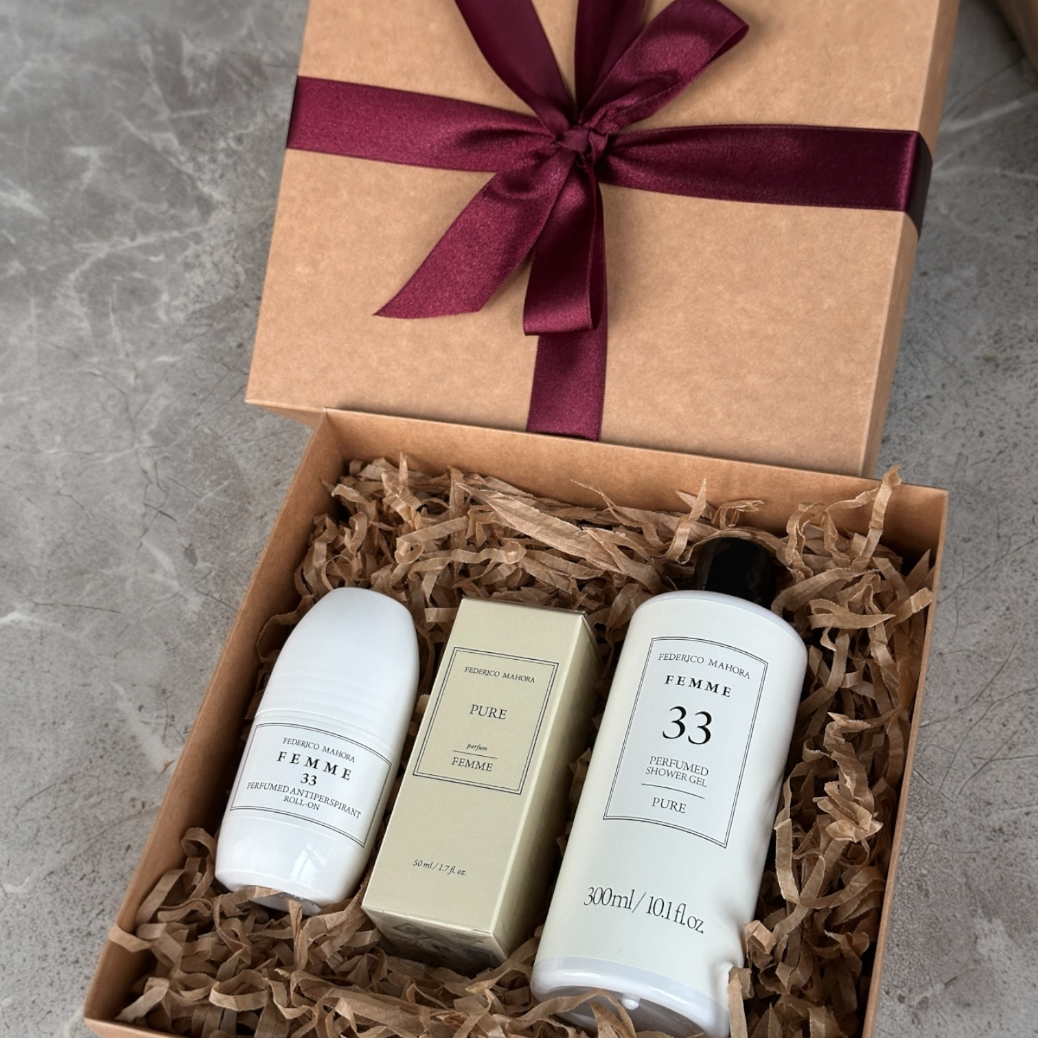 Dovanų rinkinys: 33 kvapo kvepalai + 33 prausimosi gelis + 33 antiperspirantas