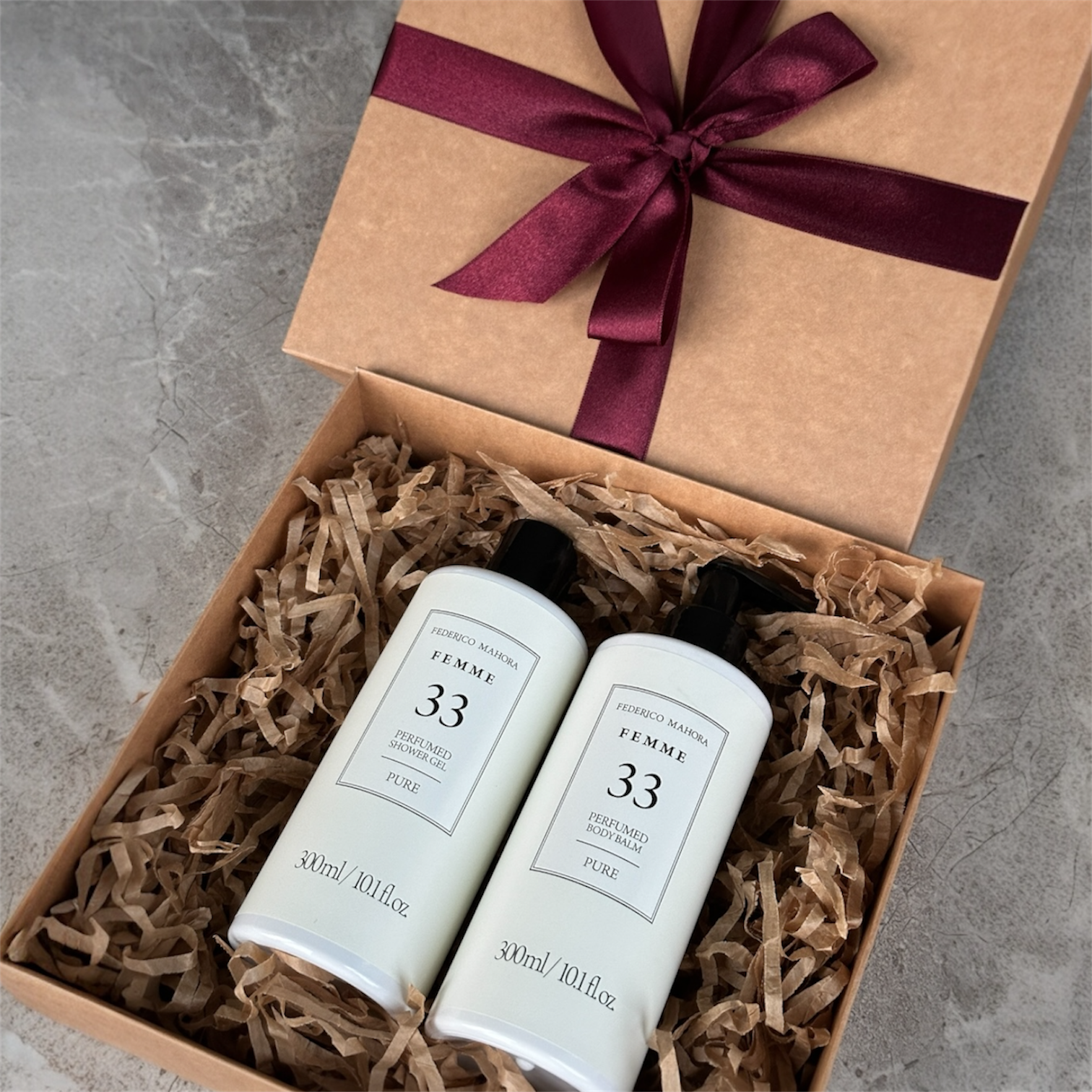 Dovanų rinkinys: 33 kvapo prausimosi gelis + 33 kūno balzamas