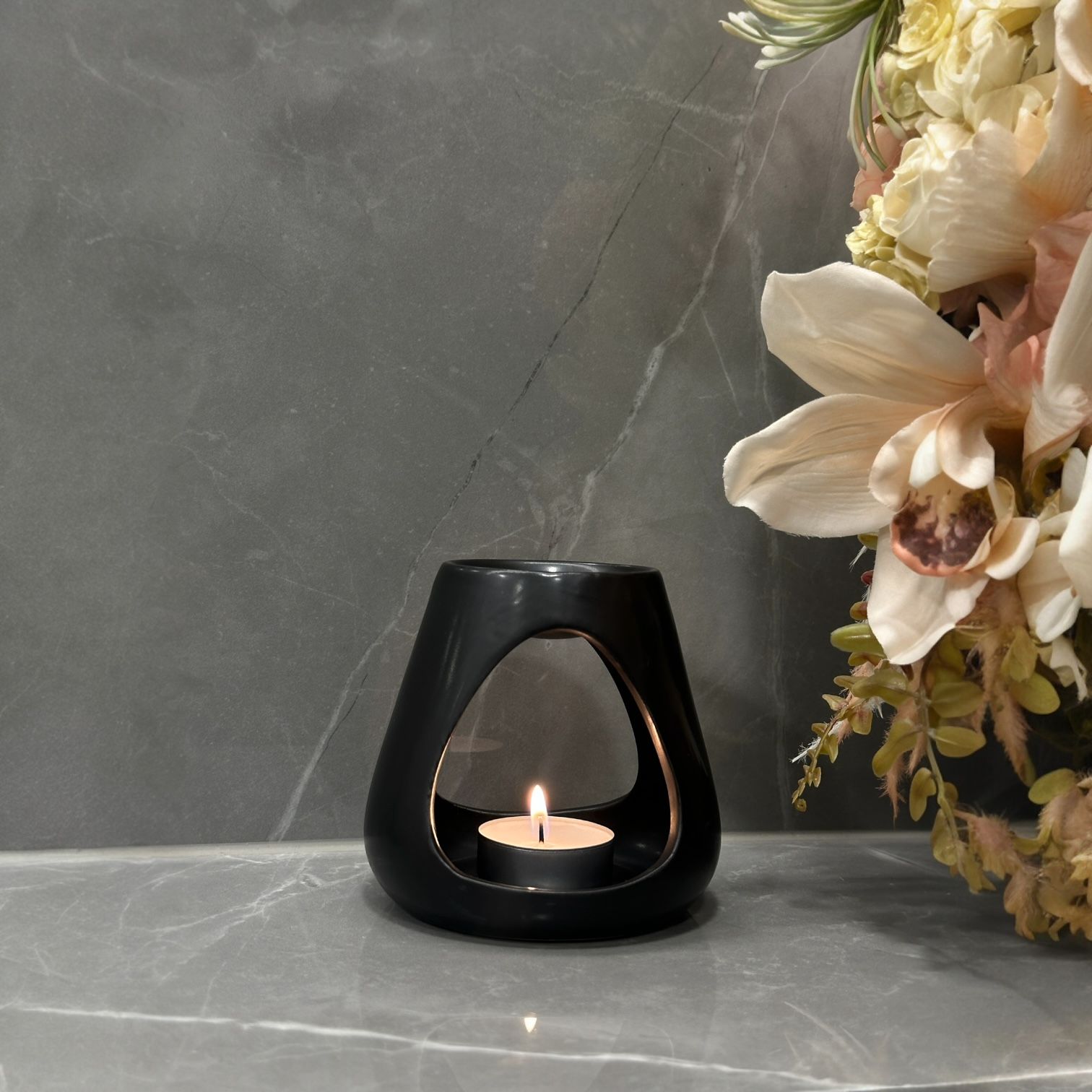 Keramikinė, stilinga ir tvirta žvakidė, skirta kvapniojo vaško tirpinimui.