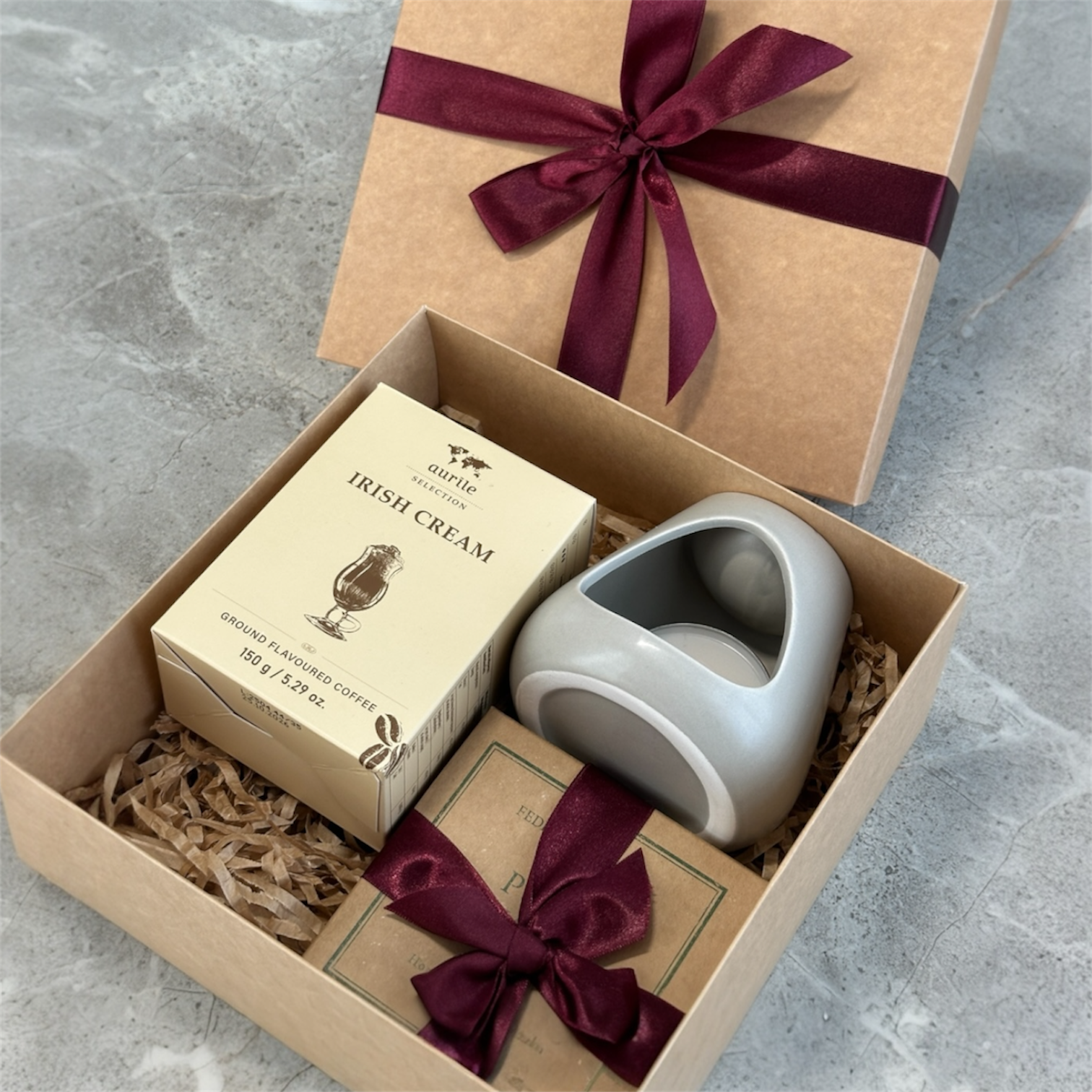 Dovanų rinkinys: Kvapnusis vaškas Lemongrass + žvakidė + airiško kremo skonio kava + dekoratyviniai degtukai