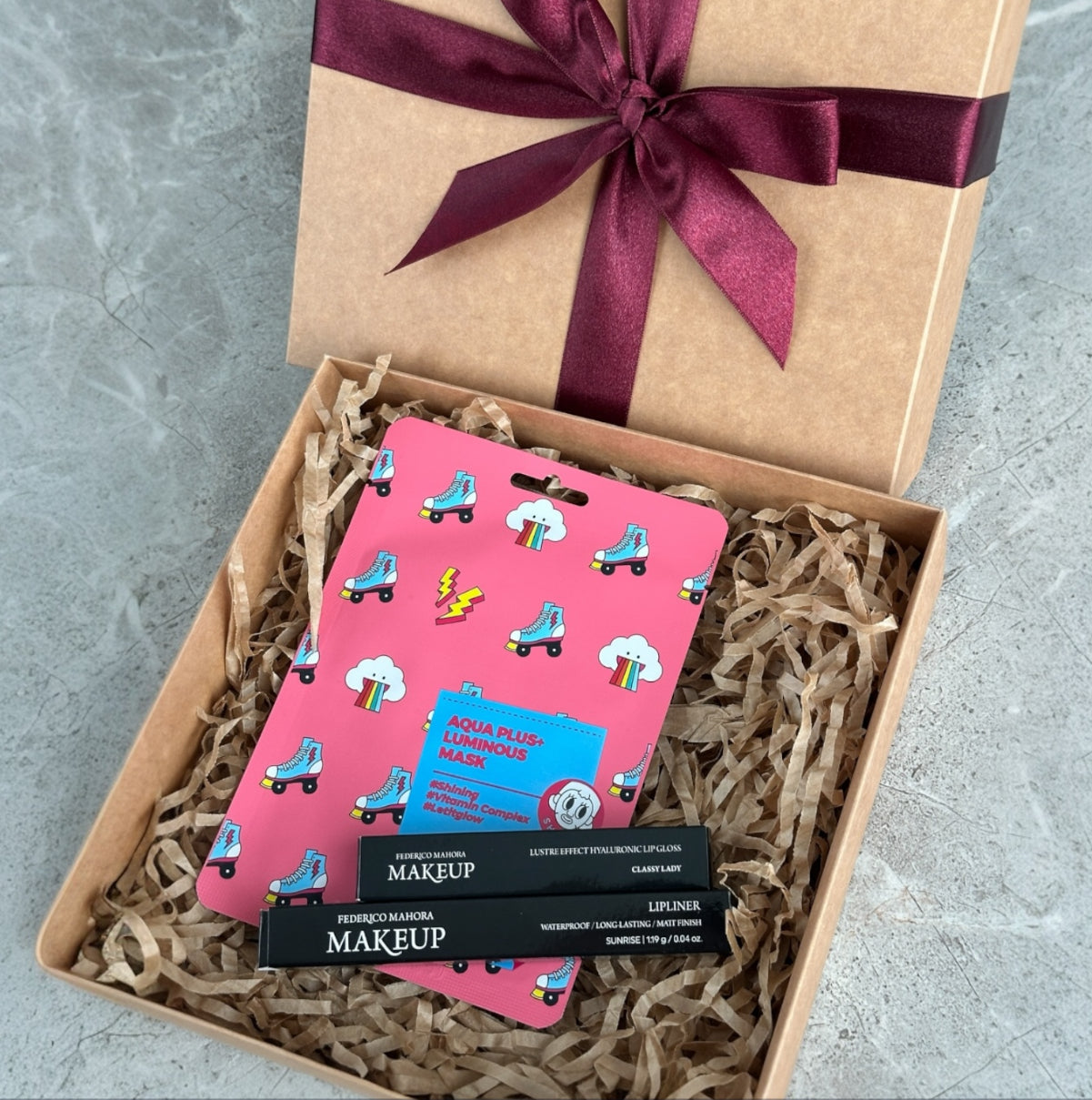Dovanų rinkinys: Lūpų pieštukas + lūpų blizgis Classy Lady + veido kaukė