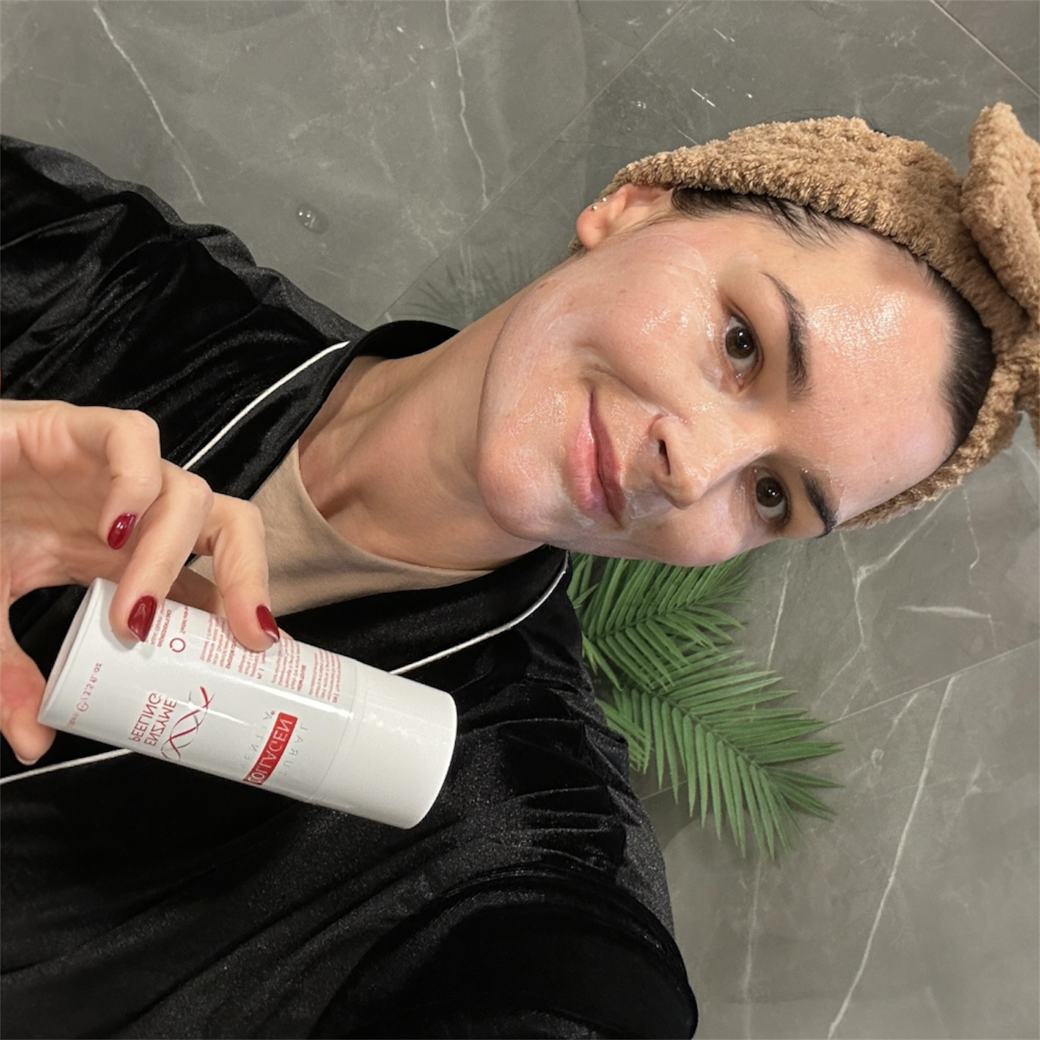 Užtepkite šveitiklį ant švarios veido, kaklo ir dekoltė odos (vengdami akių srities), švelniai įmasažuokite ir palikite 10–15 minučių. Nuplaukite šiltu vandeniu, tonizuokite ir patepkite kremu.