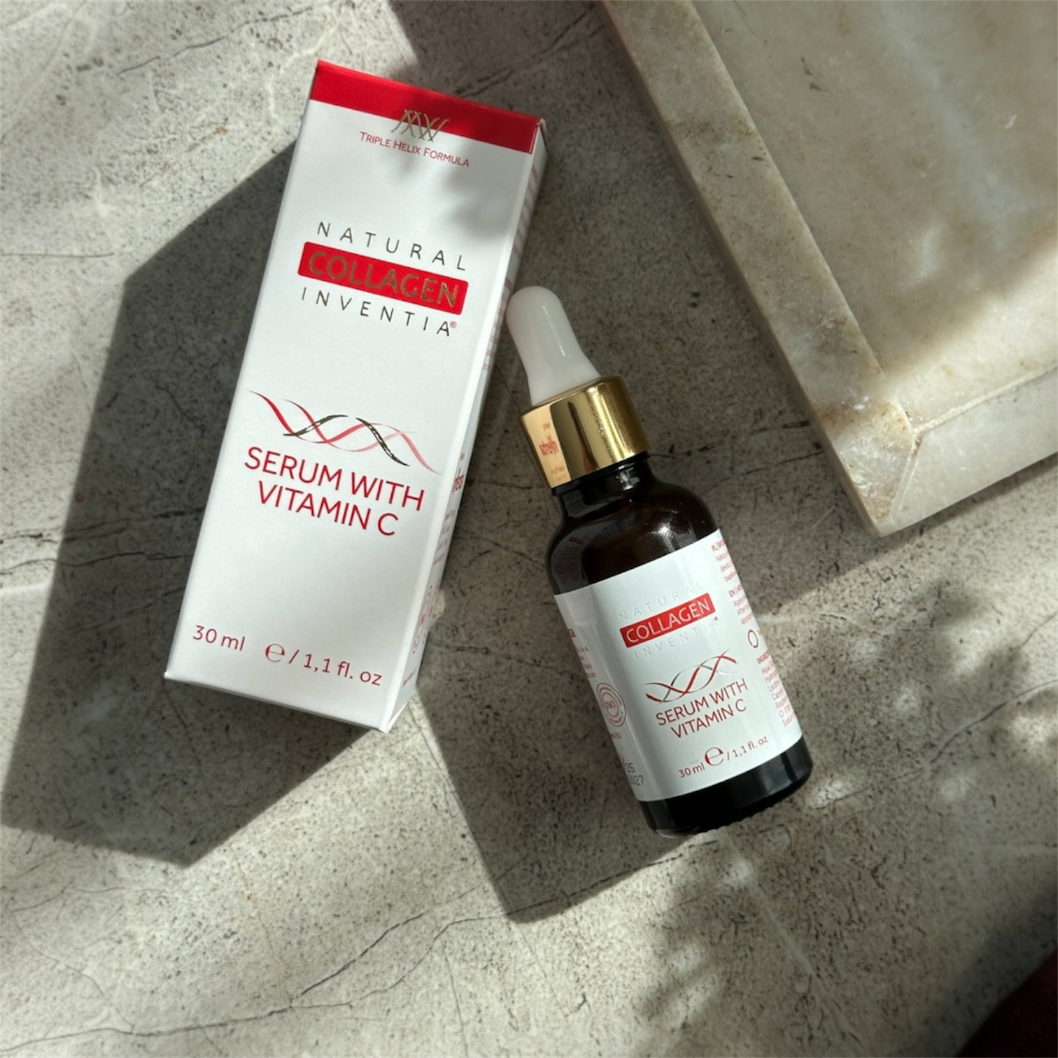 INVENTIA kolageno šviesinantis serumas su vitaminu C veidui