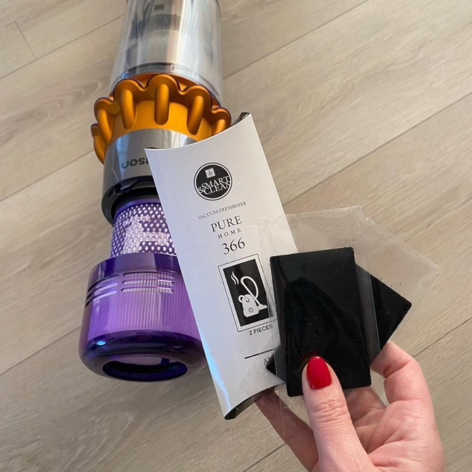 Įdėkite gaiviklį į dulkių siurblį prie išleidžiamo oro filtro ir išspauskite jį tiesiai iš apsauginės plėvelės.