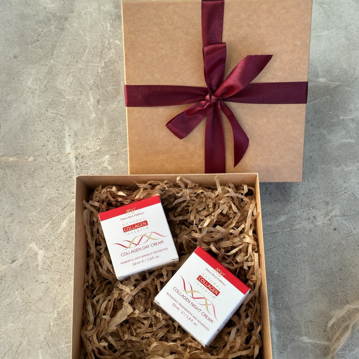 Rinkinį sudaro du aukštos kokybės veido kremai su natūraliu jūriniu kolagenu, skirti intensyviai drėkinti, maitinti ir puoselėti odą visą parą.